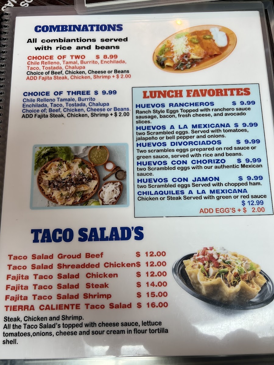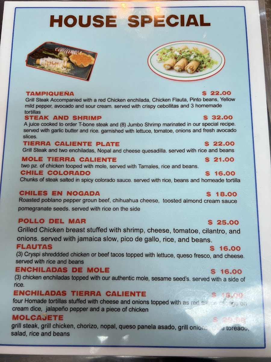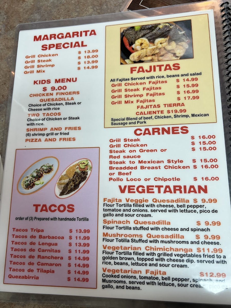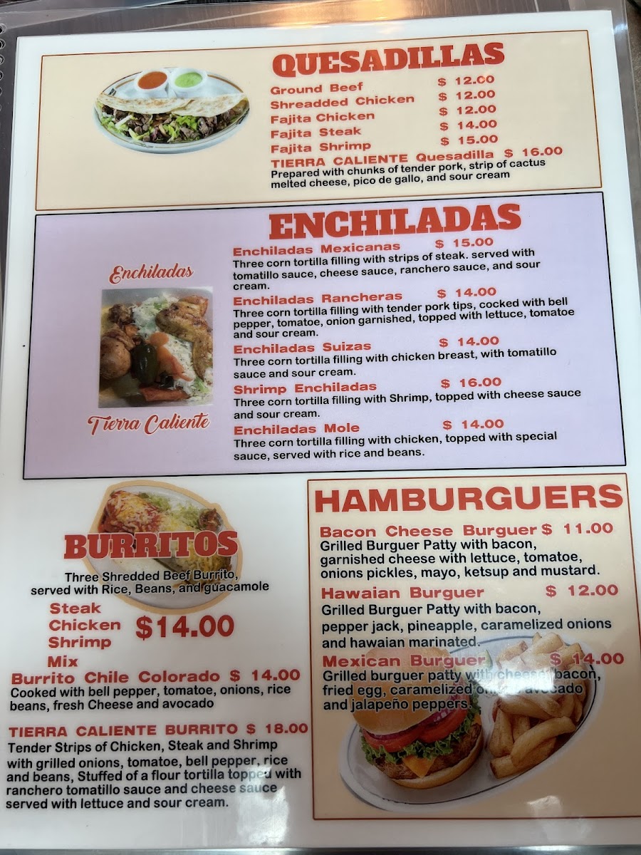 At Tierra Caliente Mexican Restaurant, each dish brings a taste of authentic Mexican cuisine right to your plate. With a focus on fresh ingredients and bold flavors, the Tierra Caliente Mexican Restaurant Menu offers a wide variety of options to suit any craving. From sizzling fajitas to mouthwatering tacos, there's something for everyone. Whether you're in the mood for a hearty meal or a light snack, the menu is filled with delicious choices made to satisfy. Don’t miss out on the flavorful soups, tangy salsas, and, of course, the classic Mexican beverages to pair with your meal. Enjoy the vibrant atmosphere and a menu designed to transport you straight to the heart of Mexico.